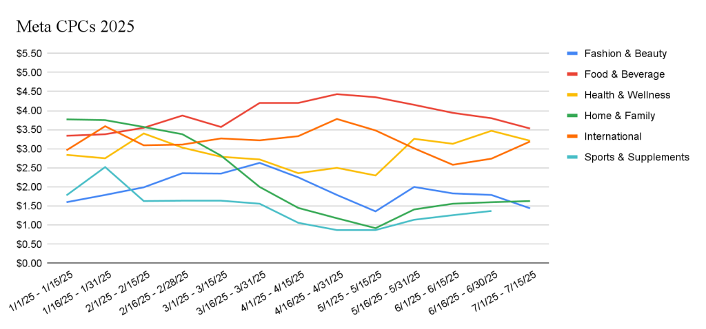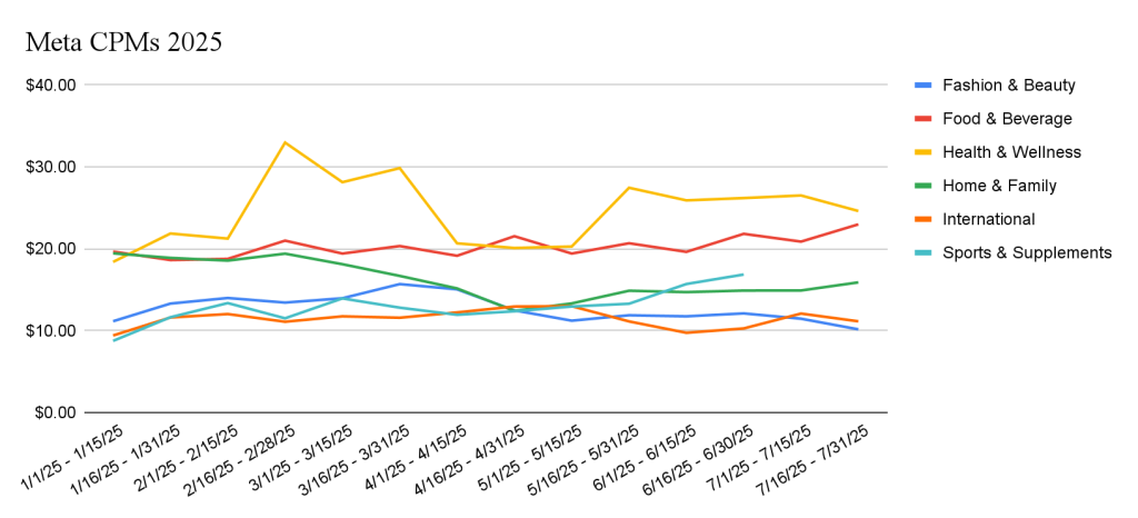 - The Food & Beverage vertical noticed a 10% increase in CPMs.